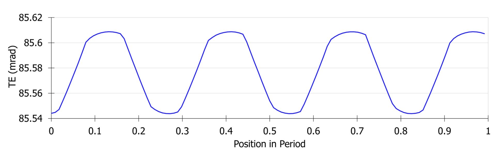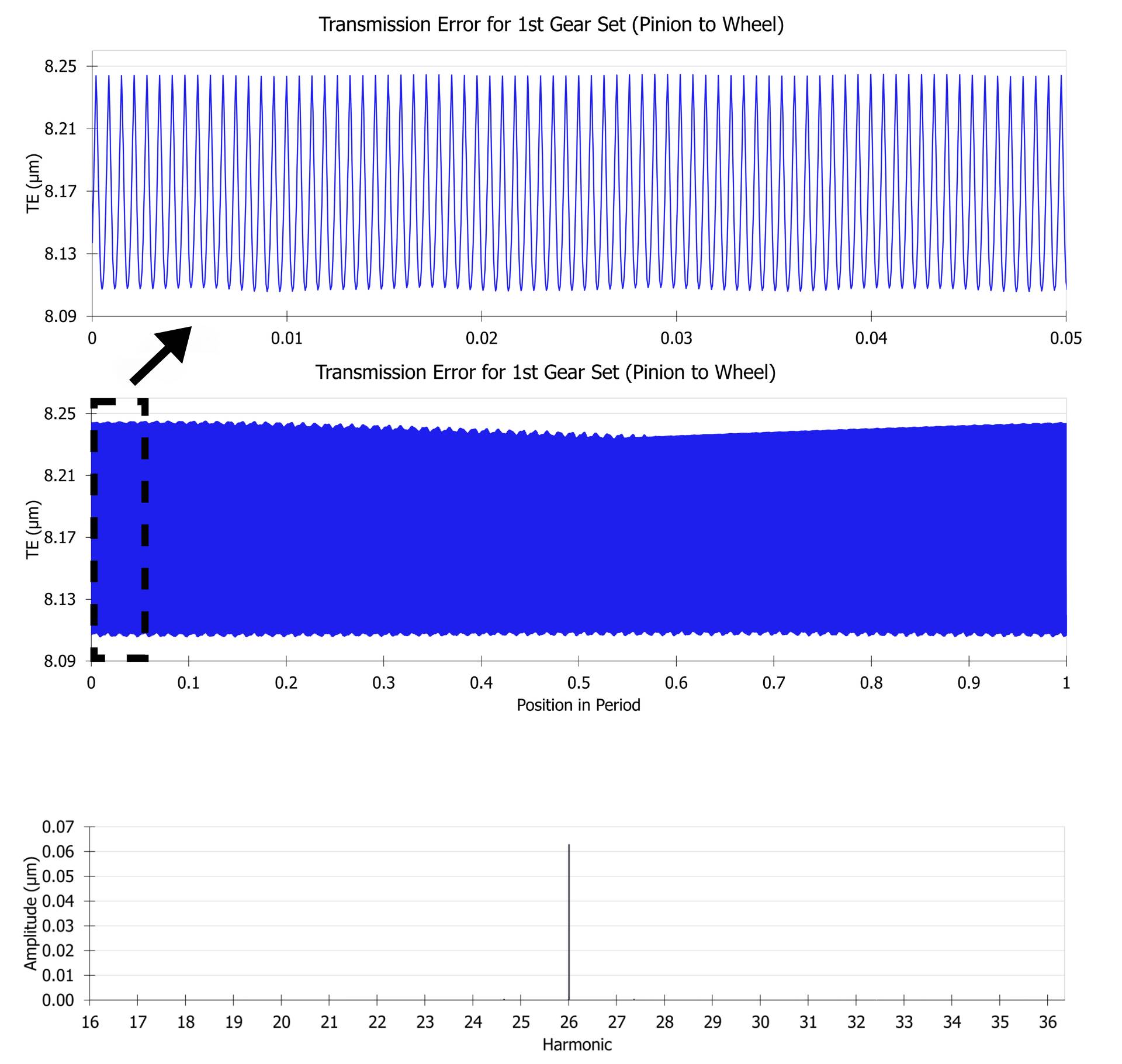 However, the wheel has only completed 0.44 of a rotation so we haven’t got back to the tooth with maximum PE, and don’t expect the same TE.